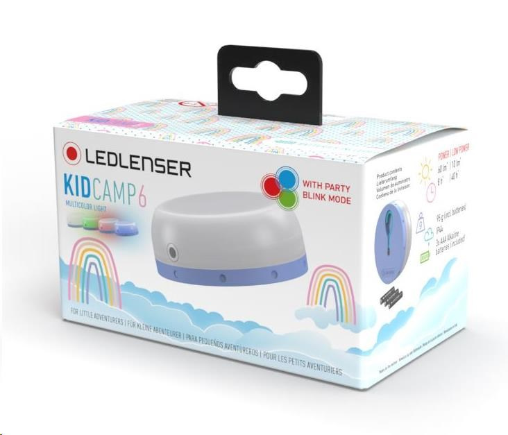 LEDLENSER KIDCAMP 6 je malá kapesní lucerna přizpůsobená speciálně pro citlivé dětské oči a dětské zacházení. Světlo je vhodné do stanů, karavanů, ale i do dětských pokojíků – zkrátka všude, kde je potřeba osvítit prostor příjemným neoslňujícím světlem. Svítilna je vybavena vestavěným hákem pro snadné uchycení. Možnost volby ze čtyř barev světla a funkce blikání navíc rozzáří každou dětskou oslavu.