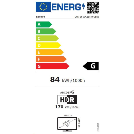 LENOVO LCD E55 - 54.6”,VA,matný,16:9,3840x2160,60Hz,8ms,400cd/m2,5000:1,HDMI,DP,USB-C,RJ45,USBHub,VESA