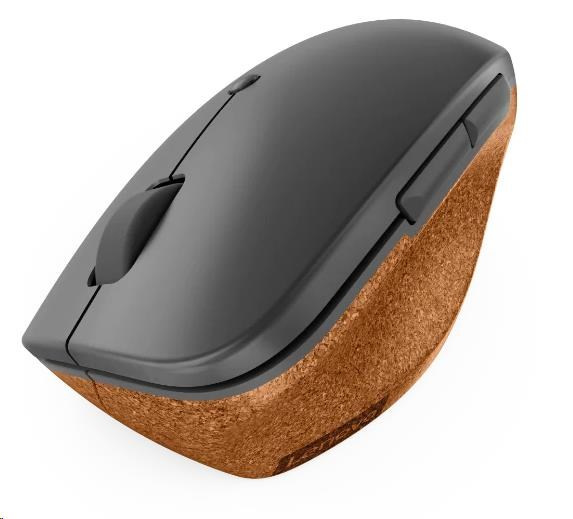 Bezdrátová vertikální myš Lenovo Go je řešení vyrobené z ekologického korku, který poskytuje maximální pohodlí a úchop dlaně, palce a prstů. Snadno se také čistí díky UV povrchu odolnému proti polití.