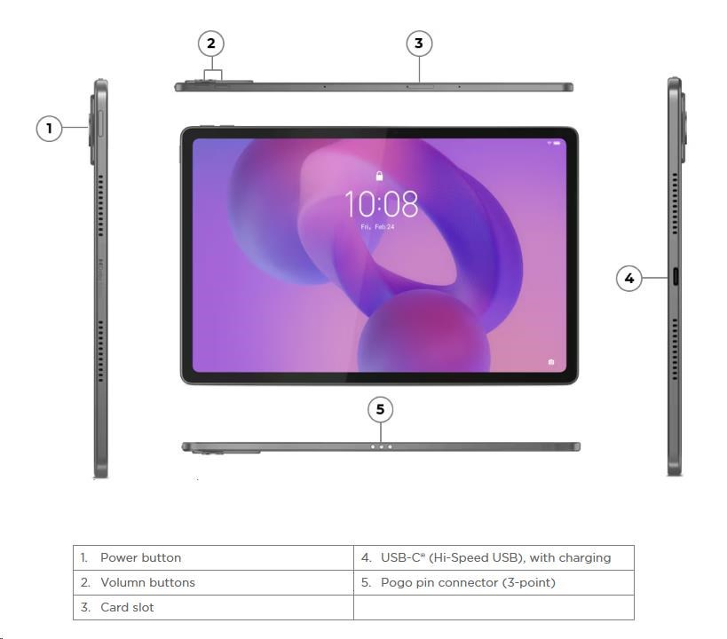 | Standartné porty | 1x USB-C® (Hi-Speed USB / USB 2.0), with charging 1x Card slot 1x Pogo pin connector (3-point) |