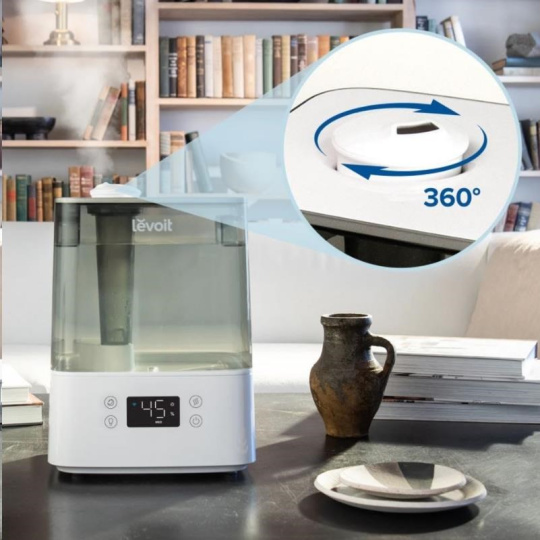Zvlhčovač vzduchu Levoit Classic300S Smart lze ovládat přímo na přehledném podsvíceném LED displeji nebo také přes aplikaci na chytrých zařízeních Apple nebo Android. Nebo si ho můžete dokonce připojit do svého Smart Home a ovládat hlasem přes Google Assistant nebo Amazon Alexa. Senzor vlhkosti zobrazuje vlhkost v reálném čase a v automatickém režimu tak okamžitě reaguje na změny vlhkosti. Vždy by se mělo jednat o rozmezí mezi 40 % až 60 %. Přes aplikaci si můžete informace kontrolovat nebo si své režimy plánovat.