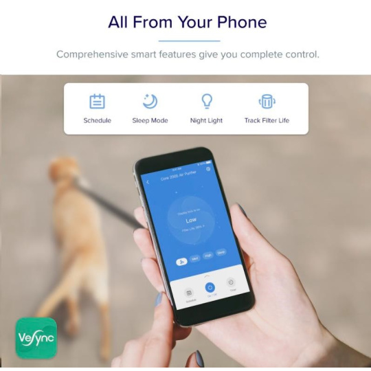 Chytrou čističku vzduchu Levoit 300S Smart můžete ovládat přímo na displeji nebo také přes aplikaci určenou pro smartphony a tabely Android a Apple. V aplikaci si můžete nastavit různé režimy, výkon, sledovat proces čištění, úroveň znečištění vzduchu nebo kondici, v jaké se filtr nachází.