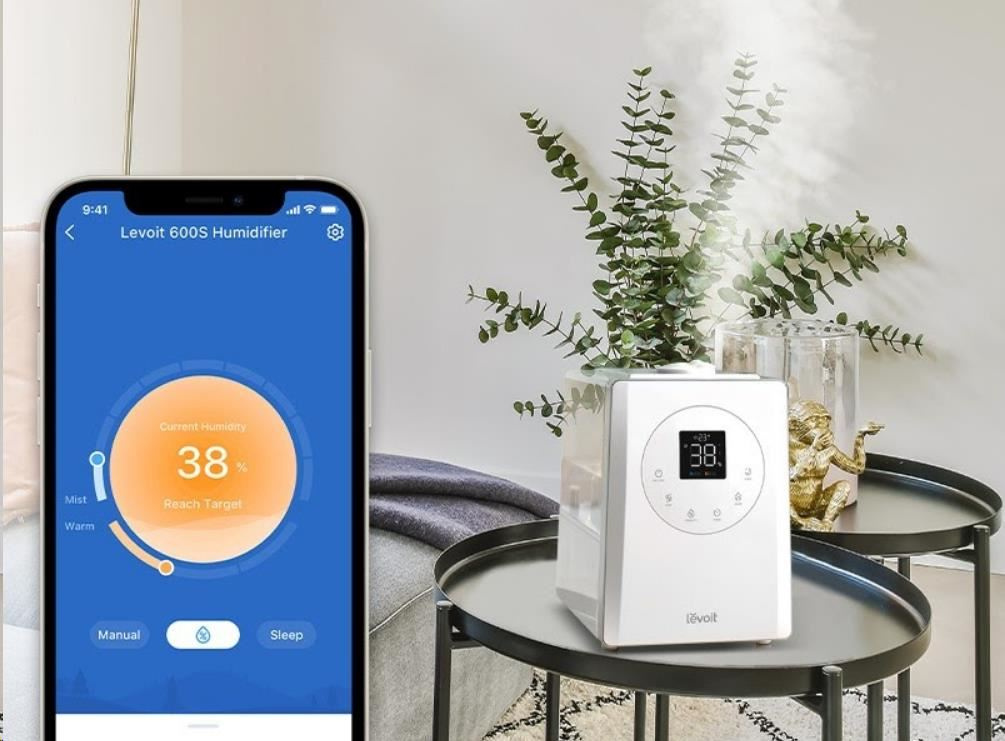 Zvlhčovač vzduchu Levoit LV600S Smart lze ovládat přímo na přehledném podsvíceném LED displeji nebo také přes aplikaci na chytrých zařízeních Apple nebo Android. Nebo si ho můžete dokonce připojit do svého Smart Home a ovládat hlasem přes Google Assistant nebo Amazon Alexa. Senzor vlhkosti zobrazuje vlhkost v reálném čase a v automatickém režimu tak okamžitě reaguje na změny vlhkosti. Vždy by se mělo jednat o rozmezí mezi 40 % až 60 %. Přes aplikaci si můžete informace kontrolovat nebo si své režimy plánovat.