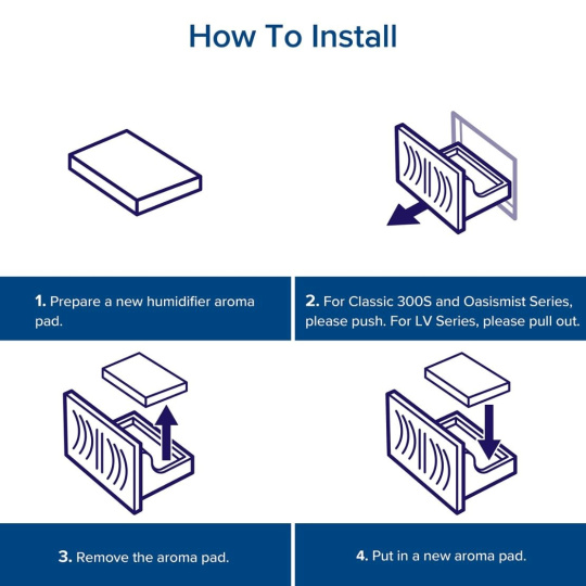 Podložky pro použití esenciálních olejů pro aromaterapii pomocí zvlhčovačů Levoit. Aroma polštářky oporučujeme měnit v závislosti na frekvenci používání. Nepřidávejte esenciální oleje, nebo jiné vonné přípravky do zásobníku na vodu nebo do komory základny. Esenciální oleje přidávejte pouze na aroma podložky.