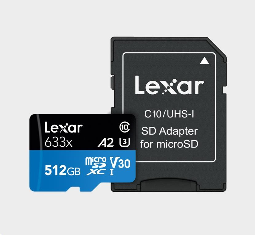 Lexar microSDXC 633x UHS-I/A2/U3/10 R100/W45MB (V30) 512GB