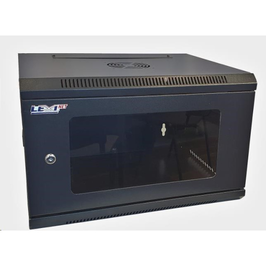 LEXI-Net 19" nástěnný rozvaděč 9U 600x450, nosnost 60 kg, skleněné dveře, rozložený, černý