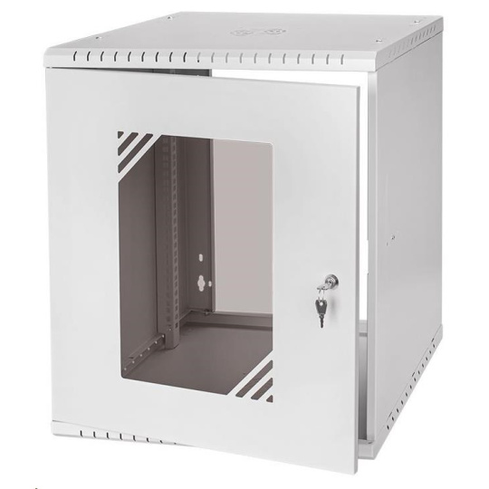 LEXI-Net 19" nástěnný rozvaděč Basic 12U 520x450, skleněné dveře, bez zad, rozložený, šedý