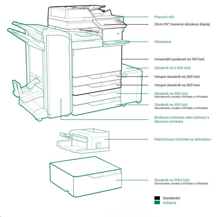 LEXMARK barevná tiskárna CX923dte, A3, 55ppm,2048 MB, barevný LCD displej, DADF, USB 2.0, LAN
