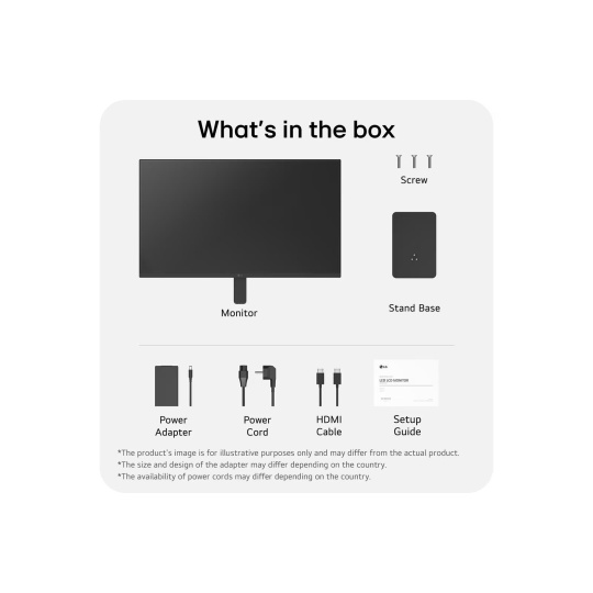- Základna stojanu 2. Šrouby 3. Napájecí adaptér 4. Napájecí kabel 5. Kabel HDMI 6. Průvodce nastavením
