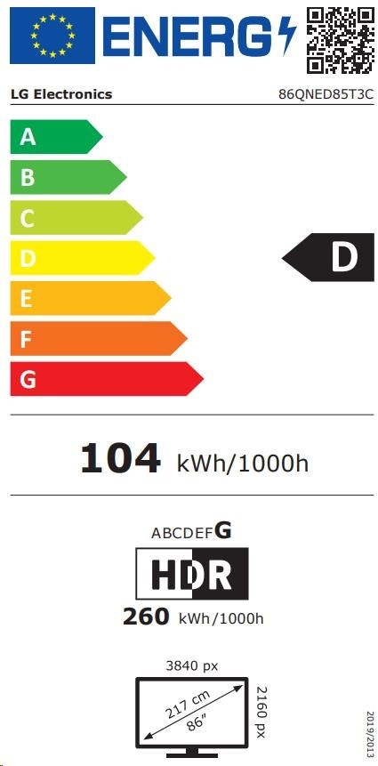 LG QNED85 86" TV, 4K Ultra HD, QNED, webOS, HDR, Bluetooth 5.1, WiFi, ThinQ, AI Sound Pro
