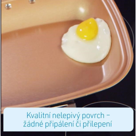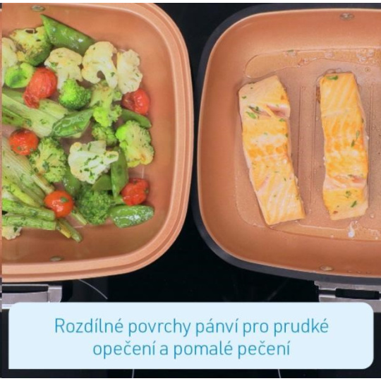 Livington Black Doubletta je inovativním vylepšením milion krát prodaného kuchyňského hitu Doubletta. V čem spočívá tajemství nové Livington Black Doubletty?Čtverečný tvar Vám zajistí dostatek místa při vaření a umožní Vám přípravu dvou pokrmů najednou. Livington Black Doubletta má extrémně odolné dno, které ukládá teplo na obou stranách, pro ještě lepší výsledky. Díky propracované cirkulaci se teplo uvnitř pánve rozloží kolem Vašeho jídla rovnoměrně, například při šetrném, pomalém dušení, či vaření v páře, nebo také při grilování. Povrch pánve je potažen nepřilnavou vrstvou, díky níž se nic nepřilepí, ani nepřipálí. Flexibilní, silikonové těsnění a ergonomická ručka s geniálním magnetickým uzávěrem drží pánev pevně uzavřenou. Tím je zaručeno perfektní vařní prostředí. Nadbytečná pára se vypaří otvory k tomu určenými. Jinak, než u běžných varých systémech, můžete Livington Black Doublettu kdykoliv během přípravy jídel otevřít: například když chcete jídlo dochutit kořením, podlít vodou, nebo prostě jenom ochutnat! Takto budete vařit mnohem šetrněji, pod nišším tlakem. Vaše jídla budou chutnat intenzivněji a na jejich úžasnou chuť určitě nezapomenete! A navzdory všemu vaříte pomocí Livington Black Doubletta mnohem rychleji, než s kteroukoliv jinou pánví.
