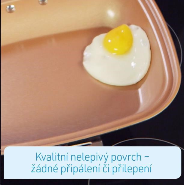 Livington Black Doubletta je inovativním vylepšením milion krát prodaného kuchyňského hitu Doubletta. V čem spočívá tajemství nové Livington Black Doubletty?Čtverečný tvar Vám zajistí dostatek místa při vaření a umožní Vám přípravu dvou pokrmů najednou. Livington Black Doubletta má extrémně odolné dno, které ukládá teplo na obou stranách, pro ještě lepší výsledky. Díky propracované cirkulaci se teplo uvnitř pánve rozloží kolem Vašeho jídla rovnoměrně, například při šetrném, pomalém dušení, či vaření v páře, nebo také při grilování. Povrch pánve je potažen nepřilnavou vrstvou, díky níž se nic nepřilepí, ani nepřipálí. Flexibilní, silikonové těsnění a ergonomická ručka s geniálním magnetickým uzávěrem drží pánev pevně uzavřenou. Tím je zaručeno perfektní vařní prostředí. Nadbytečná pára se vypaří otvory k tomu určenými. Jinak, než u běžných varých systémech, můžete Livington Black Doublettu kdykoliv během přípravy jídel otevřít: například když chcete jídlo dochutit kořením, podlít vodou, nebo prostě jenom ochutnat! Takto budete vařit mnohem šetrněji, pod nišším tlakem. Vaše jídla budou chutnat intenzivněji a na jejich úžasnou chuť určitě nezapomenete! A navzdory všemu vaříte pomocí Livington Black Doubletta mnohem rychleji, než s kteroukoliv jinou pánví.
