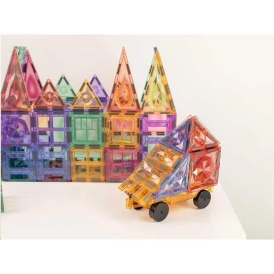 Kreativní magnetická stavebnice Elifix 108 ks v lehce pastelových barvách je navržená tak, aby podporovala hodiny neomezené kreativity, zábavy a učení prostřednictvím příjemného hraní. Postará se o rozvoj jemné a hrubé motoriky, zvýší schopnost soustředit se, představivost a trpělivost. Navíc podporuje prostorové vnímání, logiku a napomáhá pochopení fyzikálních zákonitostí. Magnetická sada nabízí množství různě velkých čtvercových a trojúhelníkových dílů, díly s okny i ploty a nechybí ani podvozek s kolečky pro stavbu dopravních prostředků.