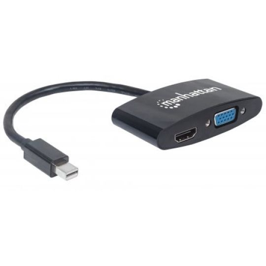 The Manhattan 2-in-1 4K Mini DisplayPort Adapter establishes a fast, simple and convenient link between Mini DisplayPort-equipped sources and existing 4k HDMI and 1080p VGA displays. The adapter is easy and quick to install and requires no complicated configuration or setup. It offers a passive, compact and integrated solution that eliminates unnecessary cables, tangles and clutter to keep installations and workspaces neat and orderly.