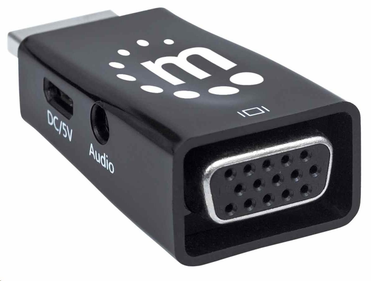 Manhattan adaptér HDMI na VGA, Micro Converter, HDMI Male na VGA Female, audio, černá