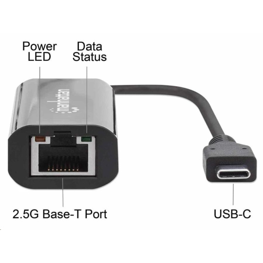 Manhattan adaptér USB-C na 2.5GBASE-T Ethernet, USB 3.2 Gen 1; 10/100/1000 Mbps & 2.5 Gbps, černá