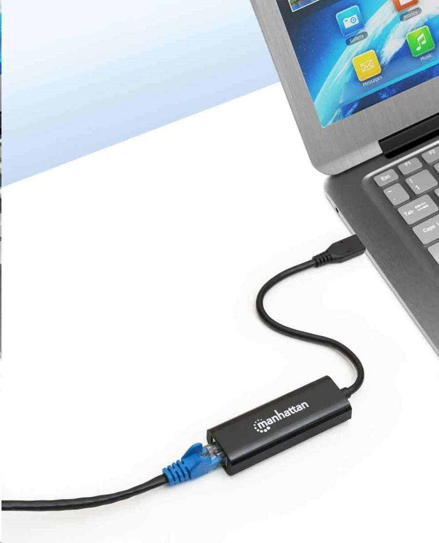 Manhattan adaptér USB-C na 2.5GBASE-T Ethernet, USB 3.2 Gen 1; 10/100/1000 Mbps & 2.5 Gbps, černá