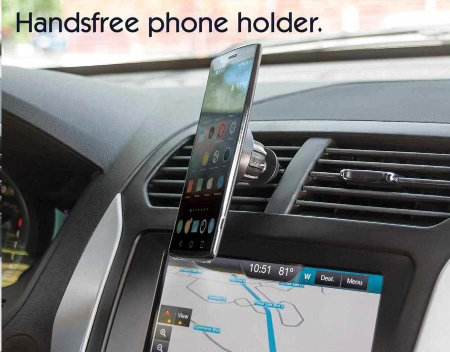 - Non-skid magnetic pad to withstand high temperatures and vehicle vibrations, securing the device when vehicle is still or in motion