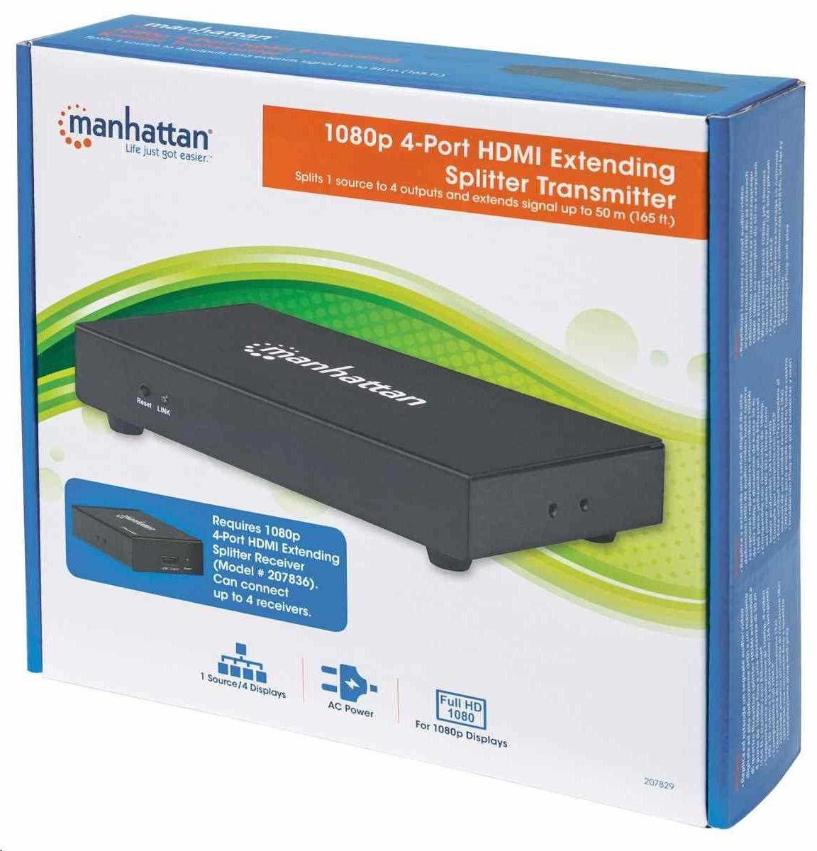 Manhattan HDMI rozdělovač, 1080p 4-Port HDMI Extending Splitter Transmitter, černá