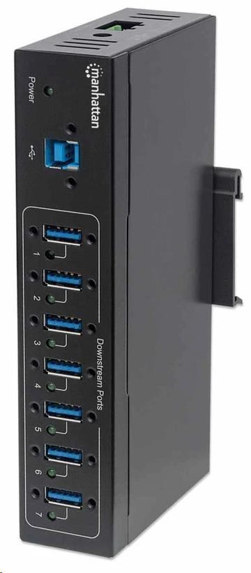 The Manhattan 7-Port Industrial USB 3.0 Hub easily expands and secures your USB access in industrial environments and high traffic areas. Versatile, sturdy mounting options allow the hub to be secured to a wall, used on a desktop or added to a DIN rail. This hub creates more open connection points for USB 3.0 devices, such as external hard drives and printers. Built-in screw-lock ports offer security for cables and additional stability from vibrations in the surrounding environment. It is backward compatible with previous USB standards to provide flexibility for attached devices. The Manhattan 7-Port Industrial USB 3.0 Hub offers plug-and-play, hot-swap capabilities and data transfer speeds up to 5 Gbps.