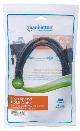 Manhattan HDMI to DVI Cables help deliver the brightest, most accurate colors and sharpest detail when connecting high-definition televisions, LCD and plasma displays, digital satellite receivers, DVD players, digital projectors and other DVI- or HDMI-equipped display devices. Manhattan HDMI to DVI Cables are engineered and constructed of quality materials to deliver dependable transmissions in digital video applications. Full foil and braided shielding, molded boots with strain relief, protective PVC jackets and gold-plated connections help provide maximum conductivity and clear, crisp signal transmissions with reduced distortion.