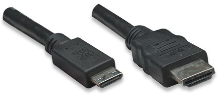 MANHATTAN kabel High Speed HDMI 3D, Mini HDMI Male to Male, stíněný, černý, 1,8m