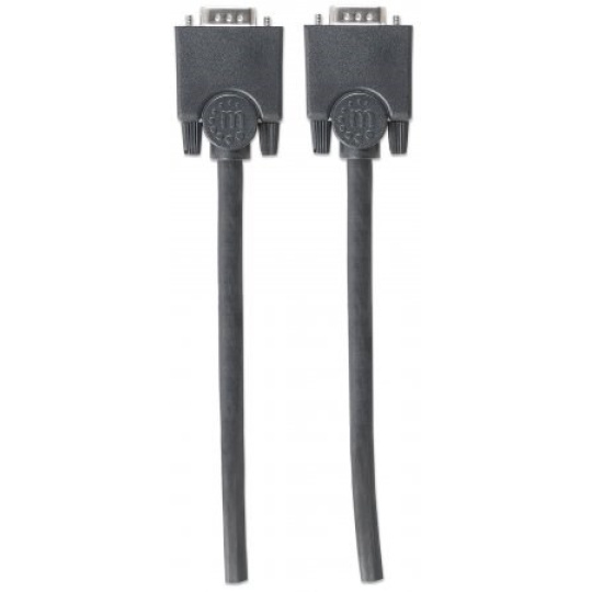 Manhattan SVGA Cables easily connect a monitor with a desktop or notebook computer. Ideal for use with video splitters, KVM switches and any HD15-equipped display, computer or device, Manhattan SVGA Cables are engineered and constructed of quality materials to deliver dependable transmissions in video applications. Full foil and braided shielding help minimize EMI interference and mini-coax (RGB) with paired video wire construction combine to provide maximum conductivity and clear, crisp images with reduced distortion over extended distances.