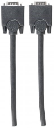 Manhattan SVGA Cables easily connect a monitor with a desktop or notebook computer. Ideal for use with video splitters, KVM switches and any HD15-equipped display, computer or device, Manhattan SVGA Cables are engineered and constructed of quality materials to deliver dependable transmissions in video applications. Full foil and braided shielding help minimize EMI interference and mini-coax (RGB) with paired video wire construction combine to provide maximum conductivity and clear, crisp images with reduced distortion over extended distances.