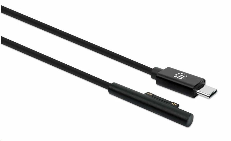 Manhattan nabíjecí kabel, Surface Connect to USB-C Charging Cable (M/M), 15 V / 3 A, 1.8m, černá