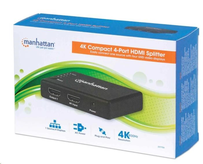 MANHATTAN Splitter HDMI 4 porty, 4K@30Hz, černá