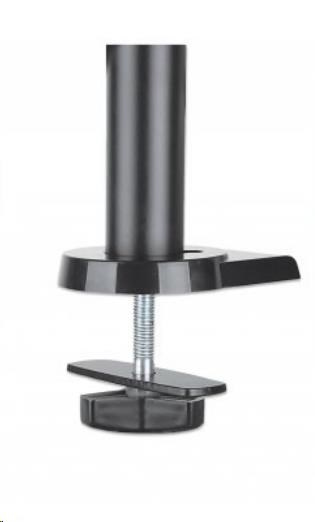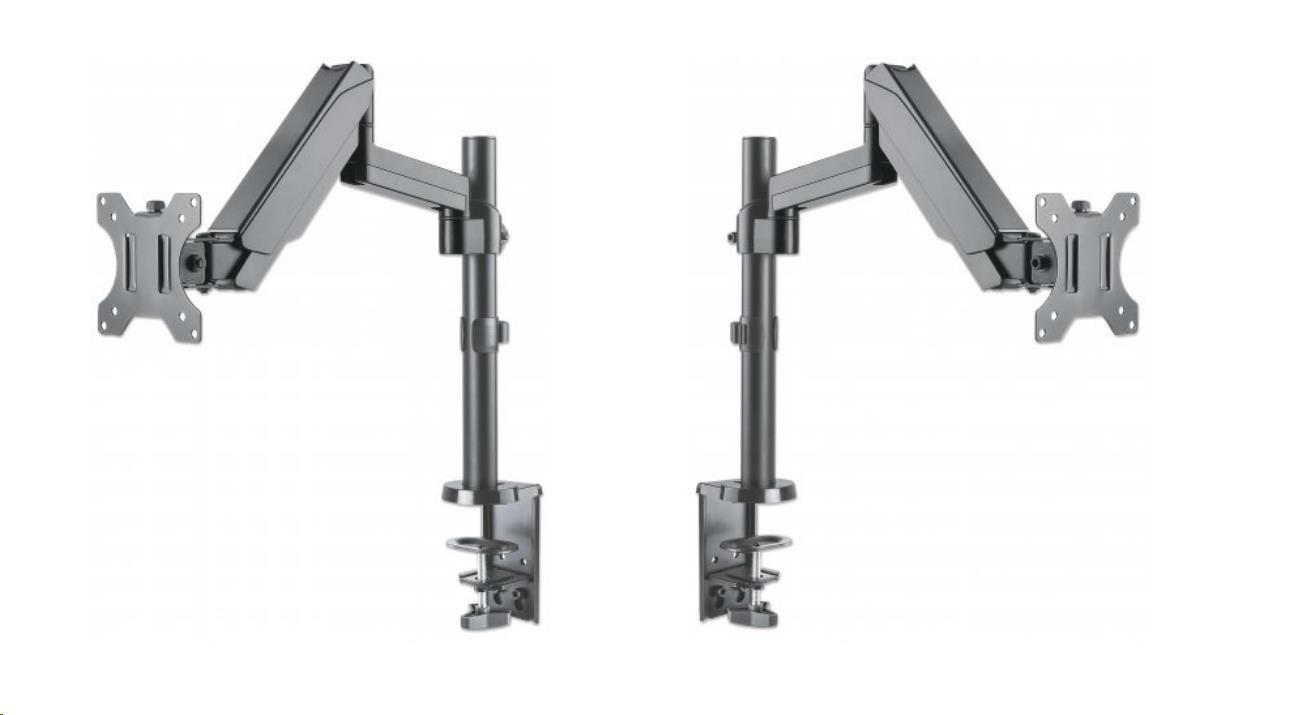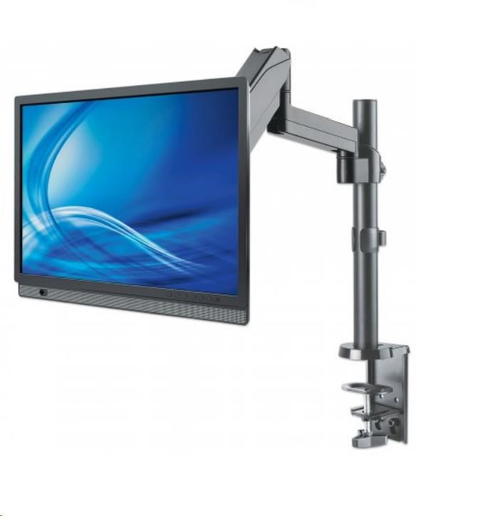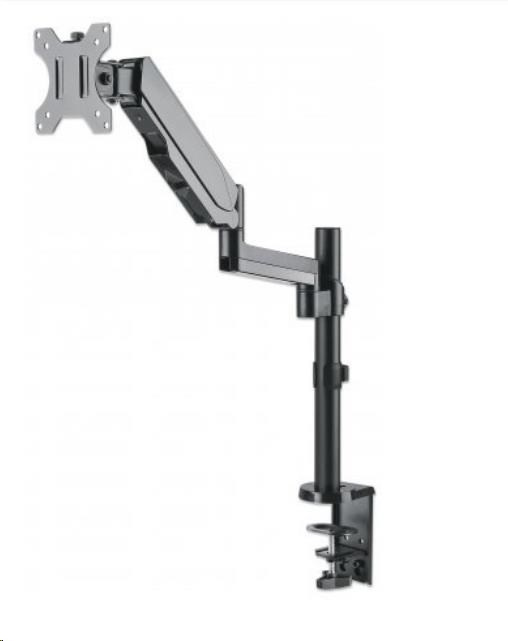 The Manhattan Universal Gas Spring Monitor Mount securely supports one 17" to 32" TV or monitor. Because it uses a gas spring to hold your display, its arm only needs the lightest touch to move your screen to the best viewing angle for you. The mount's high-quality aluminum and steel construction will provide years of reliable service. Ideal for installation on a standard-sized desk, the Manhattan Universal Gas Spring Monitor Mount lets you take advantage of the extra range of movement so you can have more space to get work done.