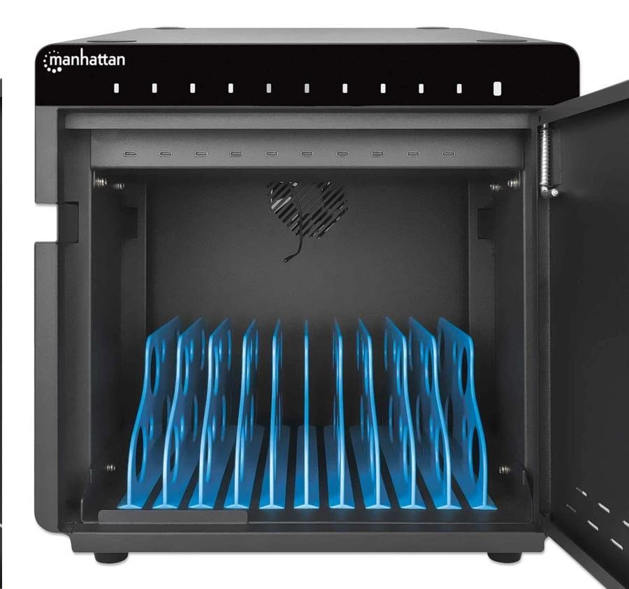 - Safely stores and fast-charges up to 10 smartphones, tablets and other USB devices up to 10"