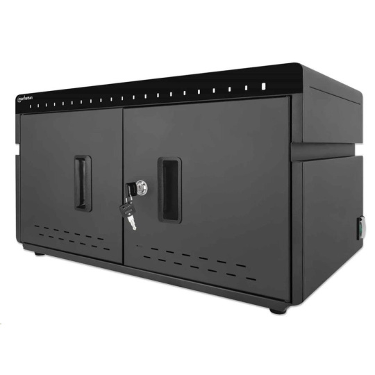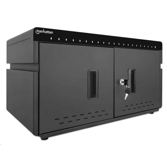 MANHATTAN stolní nabíjecí skříň - 20 portů, 360 W, přepěťová ochrana, tichá ventilace, kovové pouzdro, černá