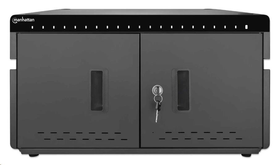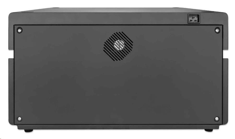 MANHATTAN stolní nabíjecí skříň - 20 portů, 360 W, přepěťová ochrana, tichá ventilace, kovové pouzdro, černá