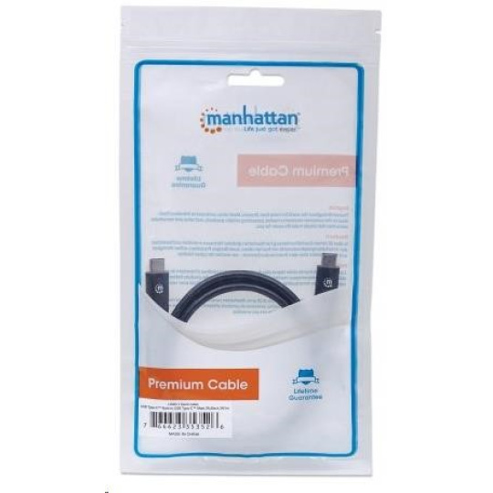 MANHATTAN USB 3.1 Gen2 Cable, Type-C Male / Type-C Male, 50 cm 3A, Black