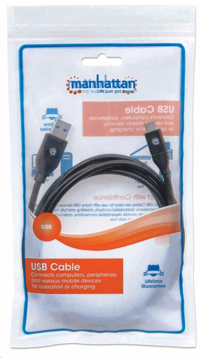 Manhattan SuperSpeed USB Type-C Cables easily connect USB Type-A peripherals and accessories to Type-C device ports. Ideal for use with any USB Type-A plug-and-play device, these cables support data transfer rates of up to 5 Gbps on Windows and Mac systems for fast, reliable transmissions and current of up to 3 amps. Nickel-plated contacts, shielding and fully molded boots with strain relief help provide dependable connections, maximum conductivity and minimal data loss with reduced EMI interference.