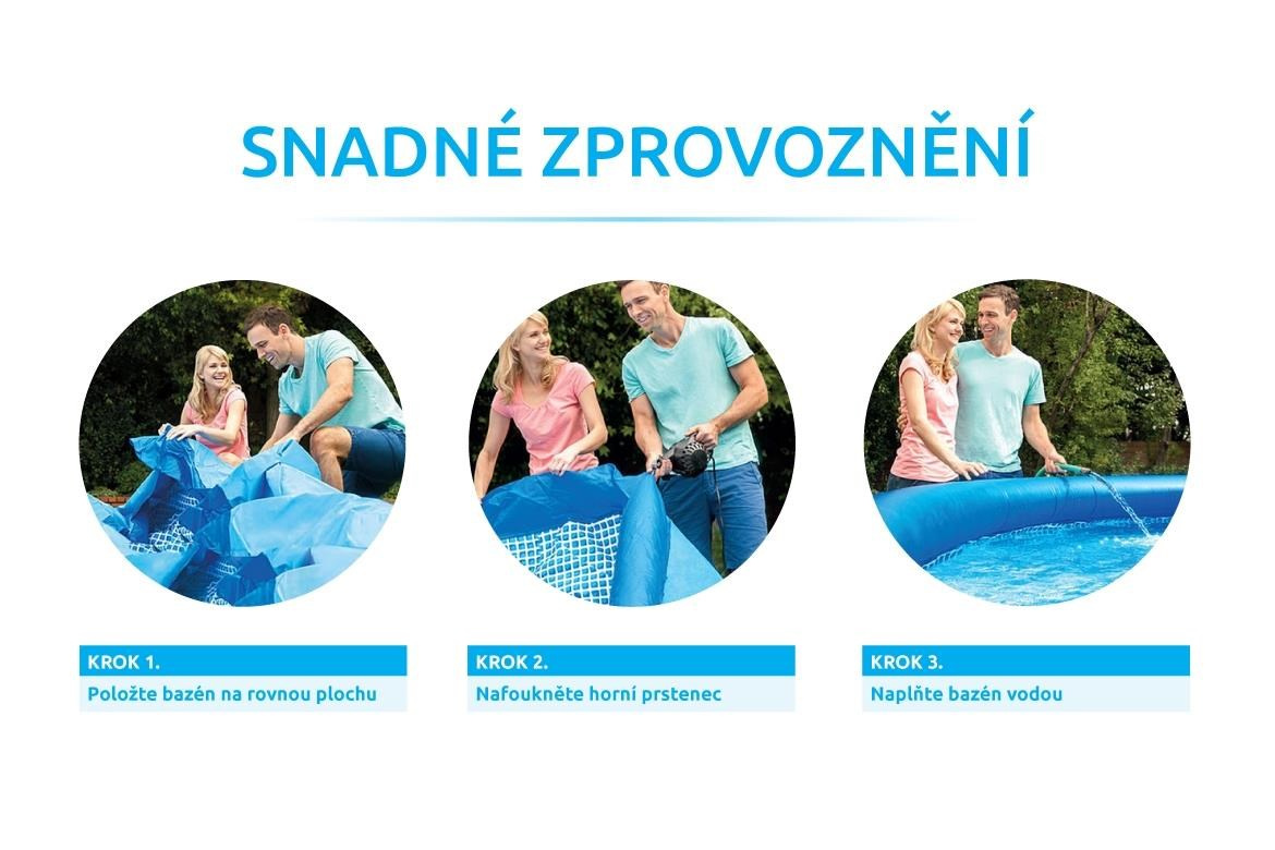 Bazén Tampa se řadí mezi neprodávanější a nejoblíbenější bazény v České republice. Koupání ve vlastním bazénu si může dopřát opravdu každý. Předností bazénu Tampa je nízká cena, snadná údržba i rychlé zprovoznění. Stačí jen připravit místo na bazén, rozvinout bazénovou podložku, bazén rozbalit, nafouknout horní límec a začít napouštět vodu. Stoupající voda sama bazén postaví. Od vybalení bazénu můžete do 10 minut napouštět vodu. Bazén je nutné po skončení bazénové sezony vyčistit, vypustit a uklidit na suché, nemrznoucí místo. Správnou údržbou prodloužíte životnost bazénu. Doporučujeme bazén po koupání zakrývat krycí plachtou. Pro snadné nafouknutí doporučujeme zakoupit ruční či elektrickou pumpu.