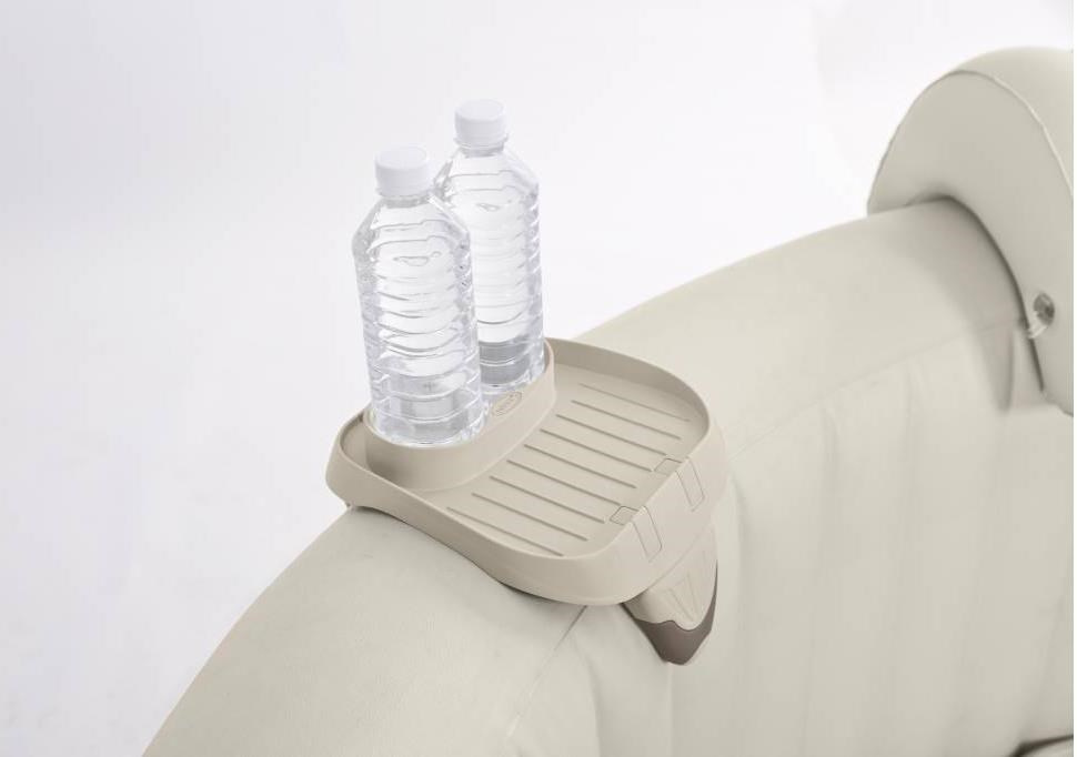 Praktický držák nápojů, který slouží k odkládání drobností nebo malého občerstvení a má dva otvory na lahve. Držák je určen pro pro nafukovací vířivky Intex Pure Spa. Hodí pro všechny nafukovací vířivky s tloušťkou stěny mezi 20-24 cm.