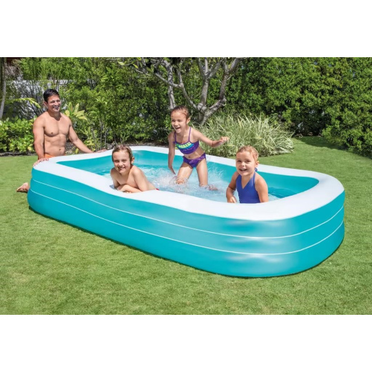 K nafouknutí stačí obyčejná velkoobjemová ruční nebo nožní vzduchová pumpa. Tři vzduchové komory s dvojitými ventily, tvrzený vinyl a vyztužené stěny jsou pak jen třešničkou na dortu, tohoto luxusního bazénu.