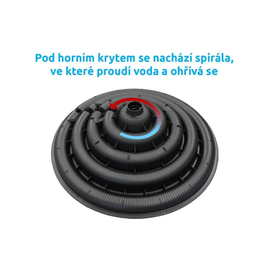 Součástí balení je solární ohřev, vrchní plastový kryt a trny na napojení 32 a 38 mm hadic.