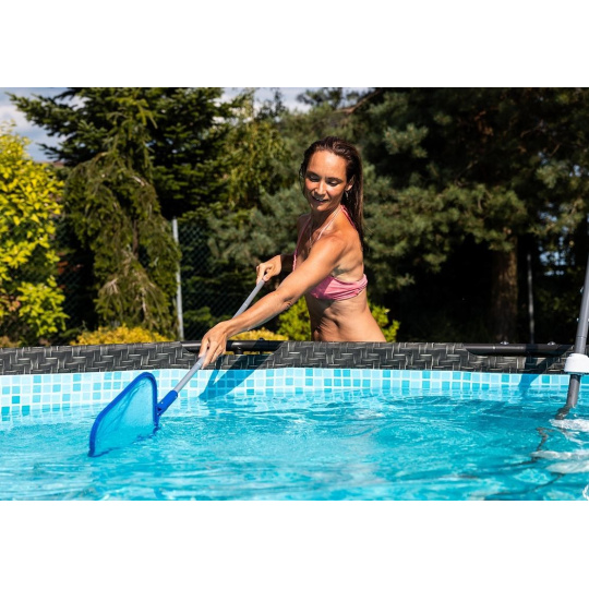 Hladinová síťka na sběr nečistot z hladiny vody v bazénu. Délku tyče si volíte pomocí nástavců.