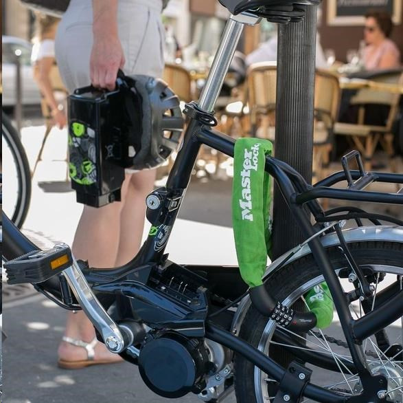 Zpevněný ocelový řetěz s integrovaným kombinovaným zámkem je 90 cm dlouhý a obsahuje ocelové spojky o průměru 8 mm, které odolávají řezání. Nylonový kryt řetězu zabraňuje poškrábání. Zámek obsahuje resetovatelnou kombinaci 4 číslic.