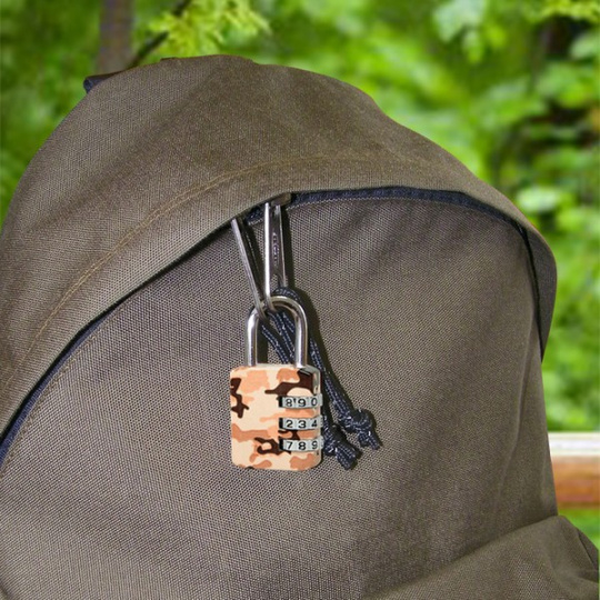 Visací kombinační zámek 1509EURDCAMO pro všeobecnou ochranu. Zinkové tělo zámku je o šířce 30mm. Ocelový třmen o průměru 5mm je dlouhý 22mm a je vyroben z pochromované oceli a nabízí odolnost proti řezání a řezání. Vlastní nastavení 3-místné kombinace zámku nabízí pohodlí bez klíče.