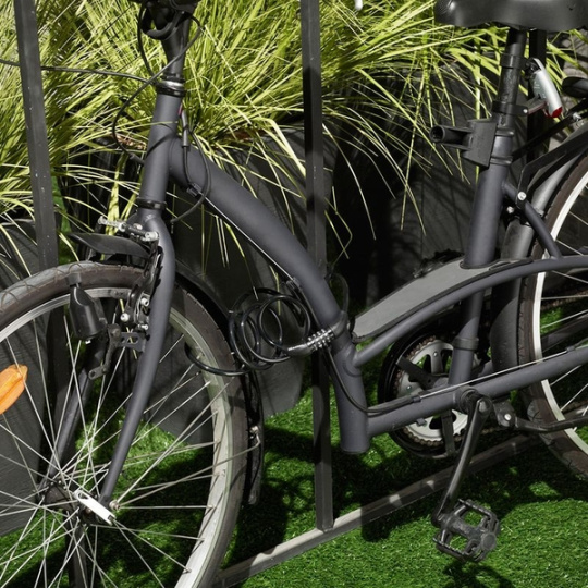 Pevný spirálový kombinační kabelový zámek je dlouhý 1,8m a má průměr 8mm pro maximální pevnost a flexibilitu. Obsahuje integrovaný nastavitelný 4-ciferný kombinační zámek. Jeho vinylový potah zabraňuje poškrábání. Vlastní navíjení pro snadné ukládání.