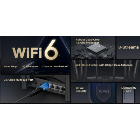 MERCUSYS MR90X WiFi6 router (AX6000,2,4GHz/5GHz, 1x2,5GbELAN/WAN,1xGbEWAN/LAN, 2xGbELAN)