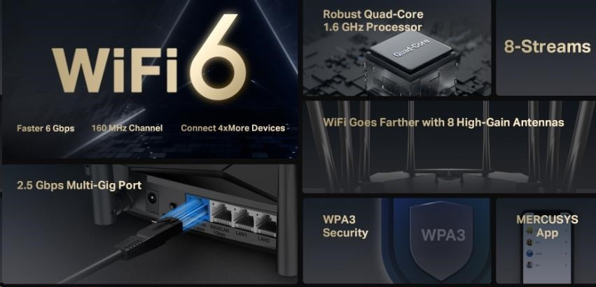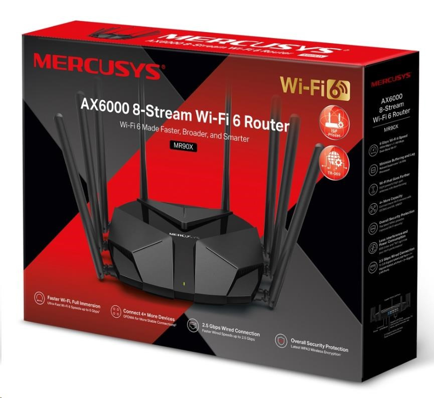 MERCUSYS MR90X WiFi6 router (AX6000,2,4GHz/5GHz, 1x2,5GbELAN/WAN,1xGbEWAN/LAN, 2xGbELAN)