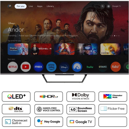 Chytrá televize Metz 50MQD7500Z využívá operační systém Google OS, proto na jednom místě najdete více než 8000 aplikací a spoustu dalšího obsahu. K dispozici vám bude i ovládání hlasem, proto bude vyhledávání aplikací, pořadů nebo ovládání televizoru a chytrých zařízení úplná hračka.