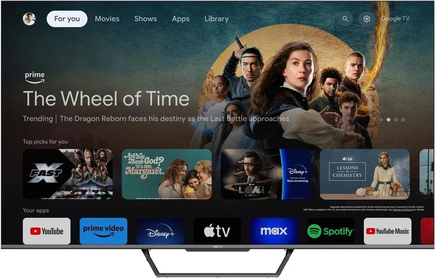 Metz 50MQD7500Z 50" TV, 4K Ultra HD, QLED, Google TV, HDR, WiFi, Bluetooth 5.1, Dolby Atmos