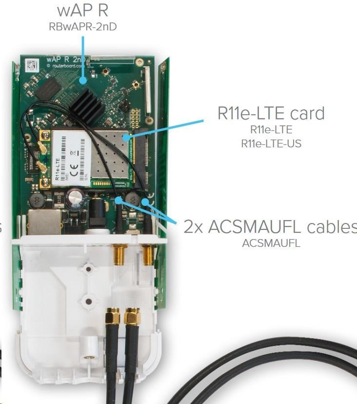 ACSMAUFL je minipigtail s konektory u.Fl a SMA female. Tento pigtail se zapojuje mezi LTE kartu (např. ve wAP R kitu) a RF venkovní kabel. Celková délka minipigtailu je 15cm..