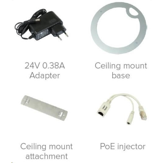 Balení obsahuje: RBcAP2nD, napájecí adaptér, PoE injektor, montážní sada